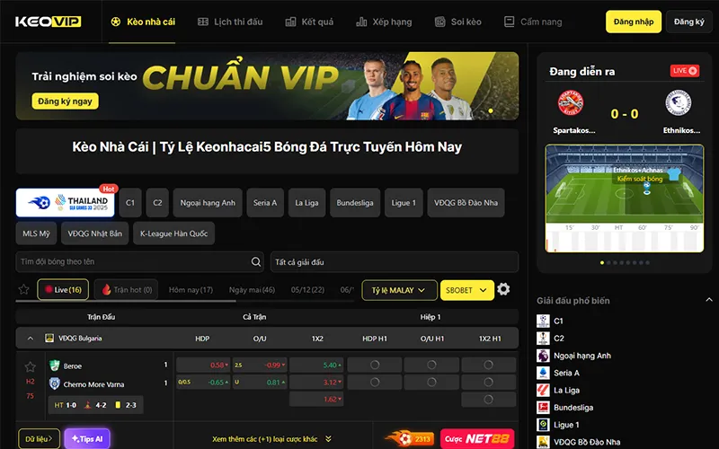 • KEOVIP cho người xem theo dõi kèo, biến động tỷ lệ, phân tích dữ liệu và xem thống kê trước-trong-sau trận.